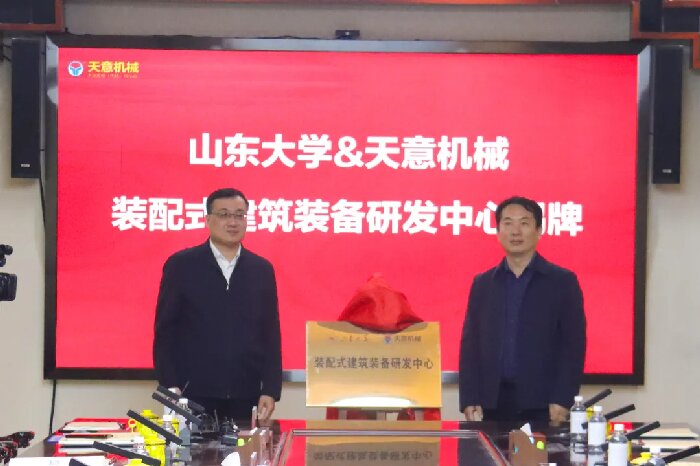 10月21日,天意機械與山東大學共同舉辦了產(chǎn)學研對接會暨裝配式建筑裝備研發(fā)中心的揭牌儀式。出席此次儀式的領導包括山東大學機械工程學院院長萬熠,山東大學榮聘教授張承瑞,山東大學教授姬帥,市科技局黨組成員、副局長付貴福,區(qū)科技局黨組書記、局長武云飛,以及山東天意機械股份有限公司董事長劉洪彬等。儀式由區(qū)政協(xié)副主席戴憲亭主持。