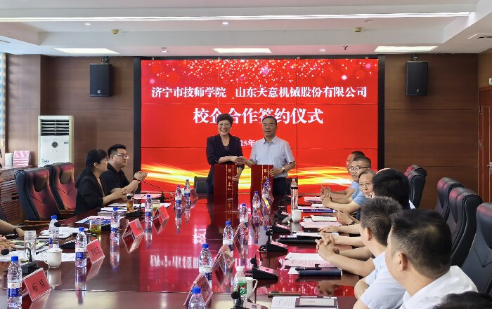 劉洪彬董事長發(fā)表了講話,他表示,企業(yè)的競爭,本質(zhì)是人才的競爭。在企業(yè)的發(fā)展中,技能型人才始終是我們最寶貴的財富。通過加強產(chǎn)教融合建設(shè),濟寧市技工院校為我們公司培養(yǎng)了許多專業(yè)過硬的技能型人才。退役軍人們,在部隊中鍛造的紀律意識、抗壓能力和團隊協(xié)作精神,正是現(xiàn)代企業(yè)所急需的人才。許多退役軍人同事已在設(shè)備調(diào)試、售后服務(wù)、生產(chǎn)管理等關(guān)鍵崗位上,成長為企業(yè)的中堅力量。作為扎根濟寧20年的本土企業(yè),山東天意機械股份有限公司成立于1998年,是以裝配式建筑裝備研發(fā)、制造為主導(dǎo),同時涵蓋鋁合金型材生產(chǎn)、機器人制造、智慧物流、新能源等領(lǐng)域的國際化、多元化、創(chuàng)新型企業(yè)集團。歡迎廣大學(xué)子和退役軍人到天意,共創(chuàng)美好未來! 隨后,劉洪彬董事長與濟寧市技師學(xué)院進行了校企合作簽約儀式。