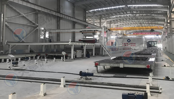 產(chǎn)品展示PC環(huán)形疊合板生產(chǎn)線采用高精度、高結(jié)構(gòu)強度的成型模具,經(jīng)自動布料機把混凝土澆筑其中、振動臺振搗后并不立即脫模,而是經(jīng)預(yù)養(yǎng)護、蒸汽養(yǎng)護,使構(gòu)件強度滿足設(shè)計強度時才進行拆模處理,拆模后的成品構(gòu)件運輸至成品暫存區(qū)或室外堆場,而空模臺沿輸送線自動返回,形成自動化環(huán)形流水作業(yè)。