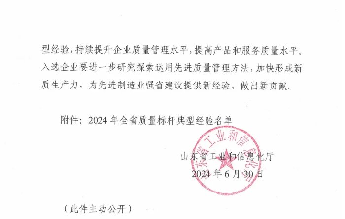 全省質(zhì)量標(biāo)桿是由山東省工信廳主導(dǎo),山東省質(zhì)量協(xié)會組織評選的省級榮譽,旨在強化提升企業(yè)質(zhì)量管理水平,推動培育和建設(shè)產(chǎn)品卓越、品牌卓越、創(chuàng)新領(lǐng)先、治理現(xiàn)代、具有核心競爭力的一流企業(yè),代表各行業(yè)、各領(lǐng)域的優(yōu)秀質(zhì)量示范。2024年主要聚焦質(zhì)量管理體系升級、關(guān)鍵過程質(zhì)量控制、產(chǎn)業(yè)鏈供應(yīng)鏈韌性與安全和質(zhì)量管理數(shù)字化進(jìn)行遴選。